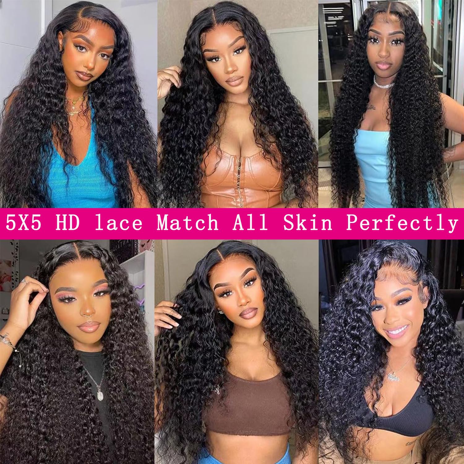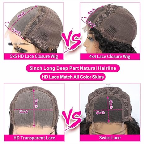 - 5x5 Hd Lace Closure Wigs Human Hair Size: 5x5 Hd Lace Closure Wigs, 5x5 Hd Transparent Swiss Lace, Soft, Invisible, Breathable, Blends Perfectly Into Your Skin,Water Wave Lace Front Wigs Human Hair Pre Plucked With Natural Hairline, Baby Hair Around